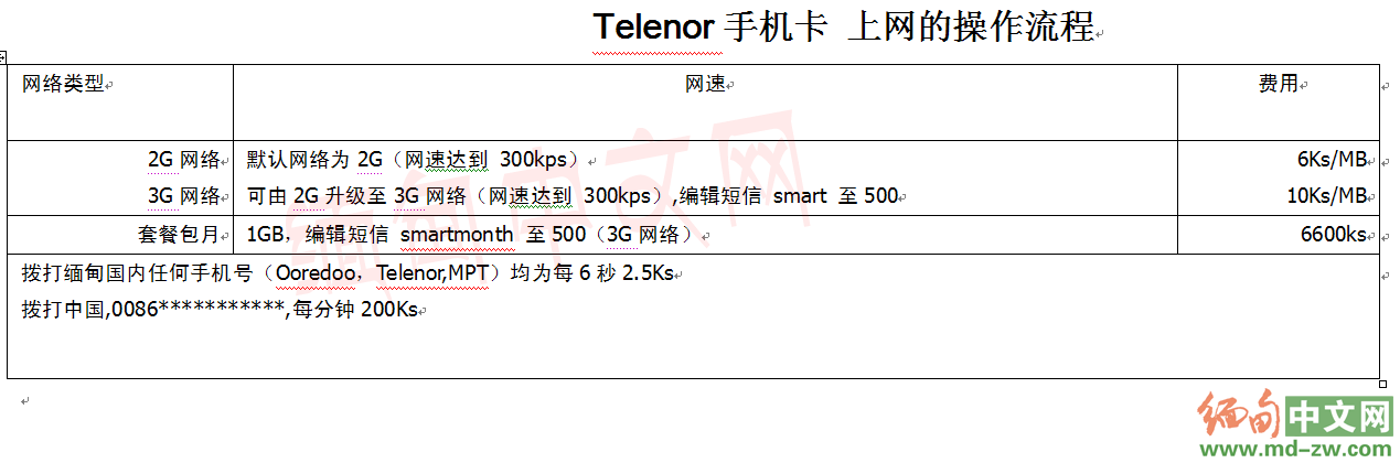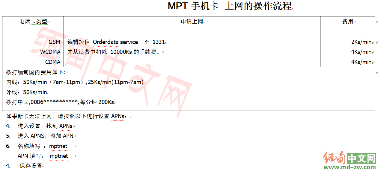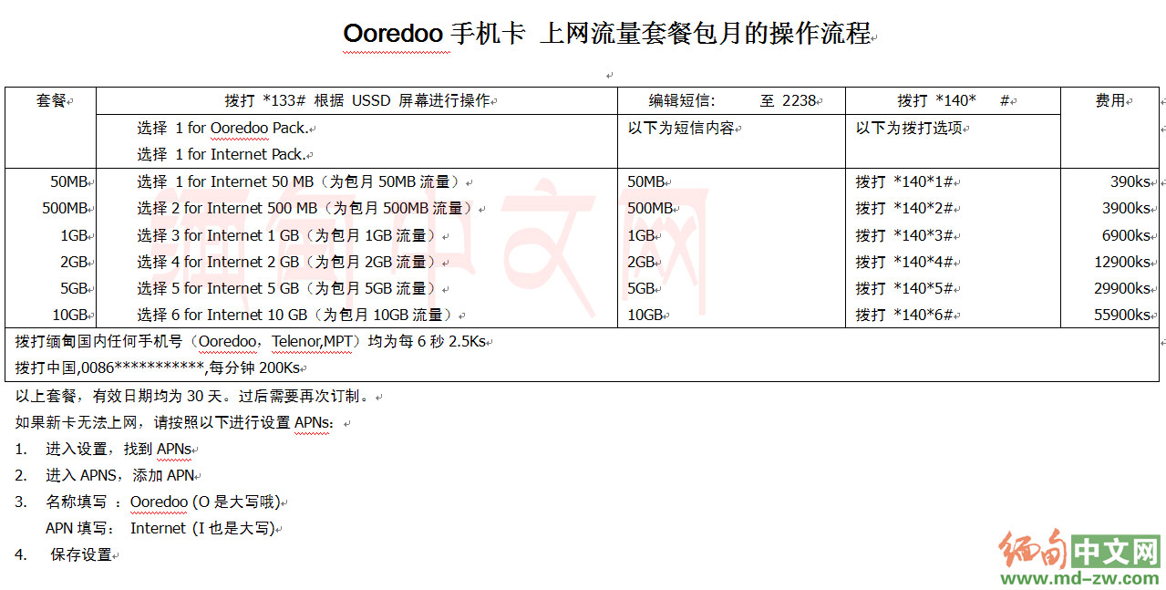 缅甸三家主流手机运营商上网套餐、拔打费率、上网设置,一应俱全。