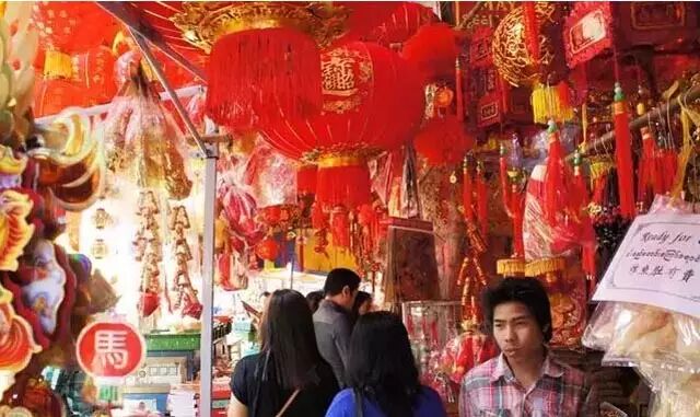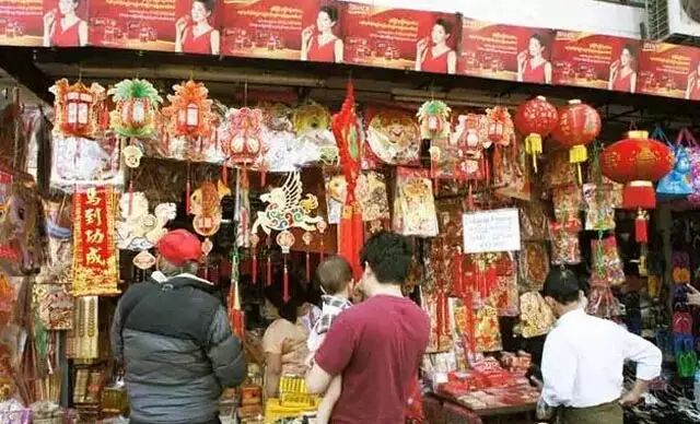 年关已近,唐人街街头春意盎然,走在街上,大部分是卖年货的商店及小贩,一路看去,街头街尾喜气洋洋挂着的过年物品颇招人眼球,需要什么年货,都能在这条街上买到。