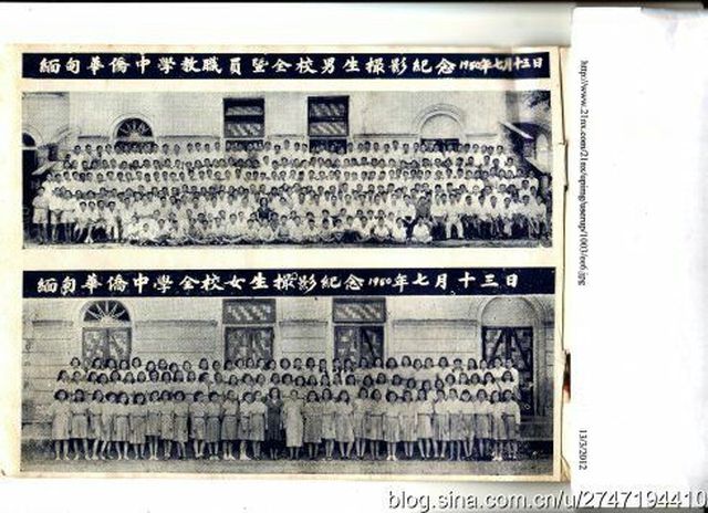 缅甸华侨约叁拾万,学童为数众多,缅属各坡小学林立,而中学则不多,致使高小毕业学生有升学无门之叹。本坡侨领丘公瑞轩有鉴及此,倡办本校,遂于一九二零年初,邀集教育总会正副会长杨子贞,张永福,曾上苑三先生及本坡热心教育人士等,开会议决倡立本校,并定名曰[旅缅华侨中学校]。首由曾公广庇捐助校址及洋楼一座。计地面积十一英亩零七,合洋楼估价五十一万盾。继由龙山堂认捐常年经费三分之一,以廿年为限。同时由各方劝募,计募得四十余万盾,乃组织校董会,选举丘公瑞轩为正总理,张永福为副总理,兴工建筑新校舍,聘请校长,定期开学。本校即于一九二一年二月十五日诞生,此乃本校成立之经过。本校首任校长为尚中,继之为杨元修,后因环境关系,先后告退。一九二四年丘公瑞轩逝世,补选丘贻厥先生为正总理,张永福先生为副总理。新校舍行见落成,是年春聘请林我将为校长,继续开办,更名曰[缅甸华侨中学校]。未及一年,林校长辞职,以教务主任管震先生为校长,对校务教管俱见认真,大有朝气勃勃,曙光初见之象。惜用费过巨,原有经费除建校舍一十八万余盾外,又购置校具图书仪器等,已告完罄,幸而曾公广庇之哲嗣曾祖概先生出面维持,始免中辍,诚侨教之幸也! 一九三零年因经费无着,校长管震氏去职,校董会开会议决,暂时停办。于是,华侨最高学府遂成荒凉之场所矣! 一九三一年,陈守金先生刱设缅甸华侨初级中学于亚弄,后因经费问题,于次年由亚弄迁入本校,并呈请侨务委员会备案,蒙甚其核准,并发给补助费。陈校长苦心孤诣维持本校,为时五载,其功非浅也! 一九三七年,坡中仝人发起慈善公会,首先以整理仰光各华校为前提,而最高学府之华中,亦认为有接收之必要。因此,慈善公会派龚子宏,吴文举等先生负责接收华中,并改组校董会。龚子宏为正主席,吴文举为财政,聘李简居为校长,周坤元为教务主任,陈鸿为训育主任。一九三九年春,李校长因事请辞,乃聘吴铁民为校长,以陈弥化,黄焕祖分任教务,训育。和衷共济,力矫前弊,并增添学科,以适应国难之需要。而校董会诸先生亦热忱筹款,共辅校政。尤以丘新样先生独资捐赠校墙,龚子宏,曾红奎,吴文举,陈水成,购赠军乐全队,使学校内容稍为充实,外观亦觉整饰,校风为之一振。一九四一年冬,敌寇南进,翌年即进占缅甸。本校实不能于敌人卵翼下幸存,乃宣告停办。迨仰光危急,征借本校囤粮之英军,竟于撤退时纵火焚毁我校,巍峨壮丽之校舍,顿成一片颓垣败瓦,仅存残破钟楼一座,与无顶之广庇楼,风雨飘荡,孑然凄立于九文台江畔……