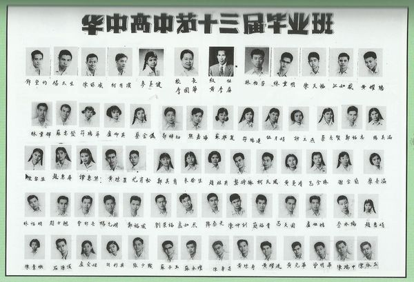 1951年,华中复办高中第一届毕业生21人。洛杉矶有丘国壤学长,加拿大多伦多有陈惠英学姐。由于年代久远,目前只联系到以上两位。大部分毕业生现状不明。