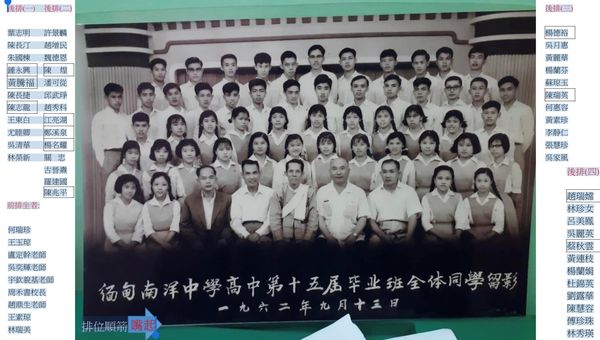 记得有一晚,我们去参加敬爱的南中初中部舍务总监杨一川老师婚礼,地点在市中心大金塔街华商商会三楼,杨老师工作积极负责,生活极端朴素,始终身着白衣短裤,不知道的人以为他是一名学生,心想此次我们将目睹穿西装的新郎哥了。不料,当我们从升降机出来,也许是去晚了一点,有几个贵宾在招待员们簇拥下,迎面走过来,连同我们顺水推舟,送进升降机内,我们两个均性格羞怯,不好意思说明实情,手上也没有什么礼物,回到楼下,灰溜溜地返回学校,失去唯一能见到杨老师穿西装的机会。