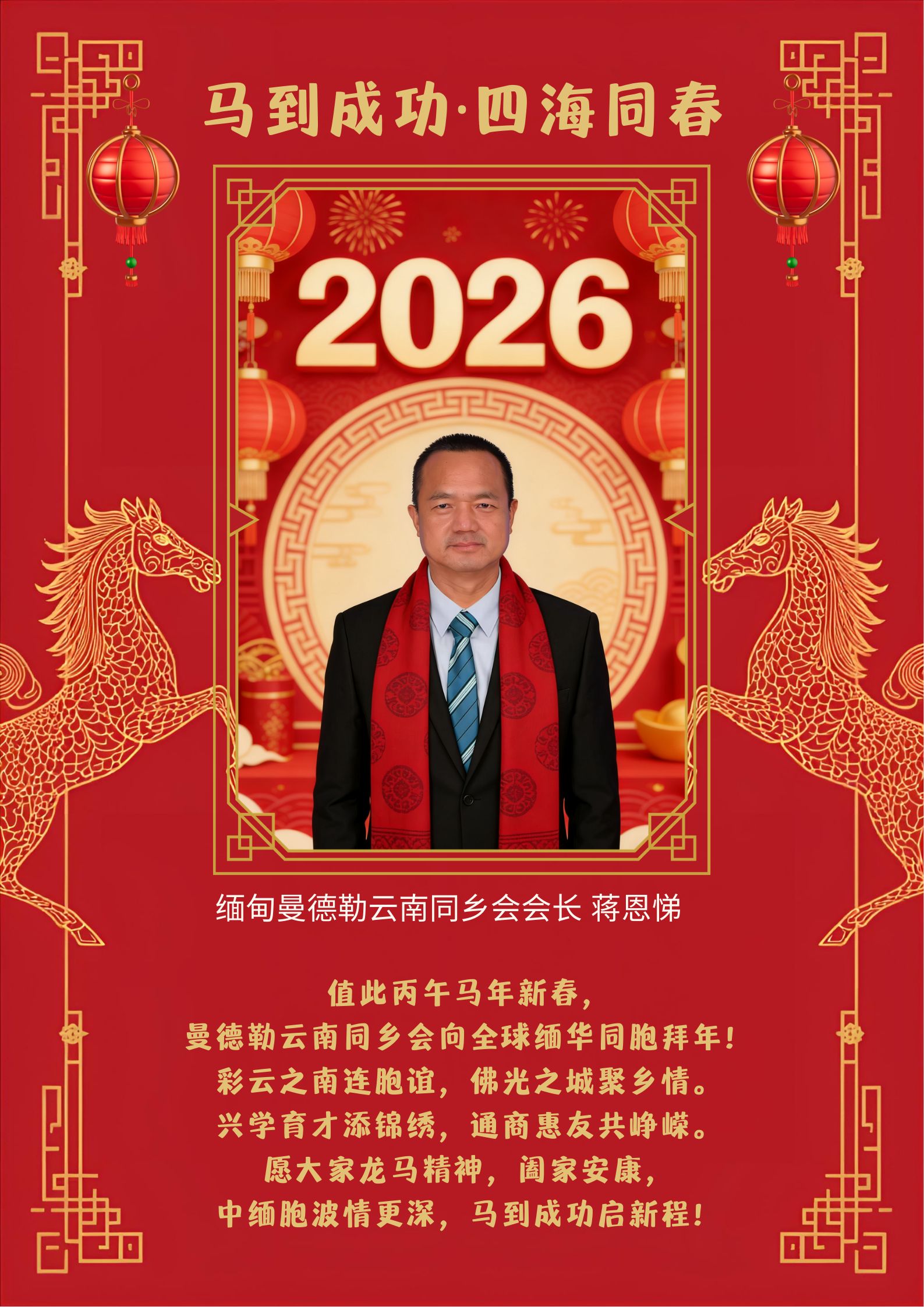 丙午新岁,万象更新!缅甸曼德勒云南同乡会会长蒋恩悌向全球缅华同胞致以新春祝福!