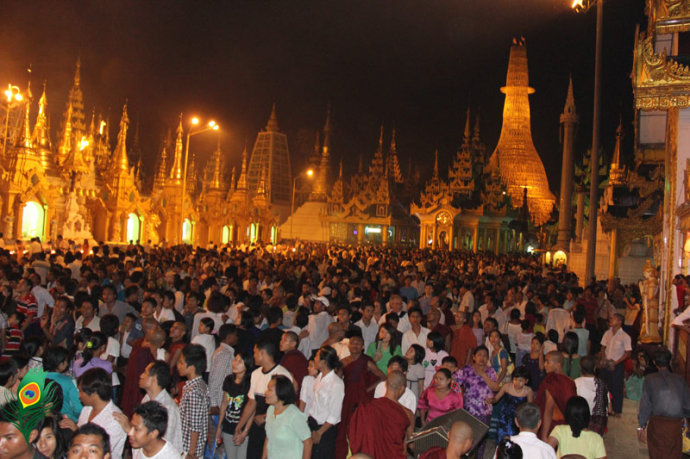 缅甸是一个佛教国家,有“万塔之都”的浦甘,就是最好的说明。佛节时间是在公历2月到3月之间满月前后的一周左右,这是整个缅甸最重要的,也是最壮观的佛节,也是缅甸人一辈子必定会到大金塔参拜一次所选择的时间。这期间,除了僧人会诵经拜佛以外,普通民众也会来此参拜献花点灯捐款,寺庙会准备免费的素餐和水果供路人取用,有些全国性的庆典也会选在这个时候举行。