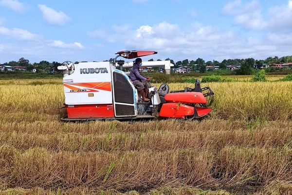 伊洛瓦底省马乌宾(Maubin)专区邦达诺(Pan-ta-naw)县区在现2025—26财政年度雨作物种植季节期间种植了雨季稻93,912英亩,现在这些雨季稻已开始进行收割工作了,其中有关标准田的收割工作于11月27日在Kyon-tone-kalay乡农夫U Kyaw Kyaw Moe的 8.5英亩的农田中举行。