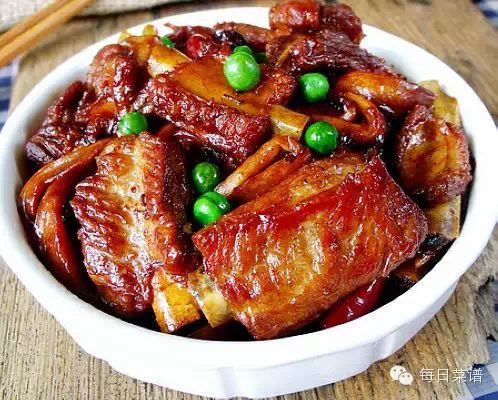 原料:排骨、杏鲍菇、干辣椒、花椒、八角、丁香、姜片、盐、老抽、香叶、生抽、料酒、冰糖、十三香