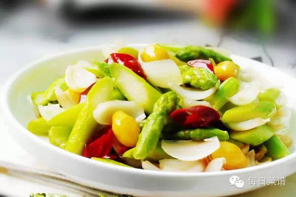 2. 热油锅,爆香蒜片和干辣椒后下百合煸炒,再放入芦笋、白果炒至熟,加盐、鸡精、胡椒粉调味炒匀即可。