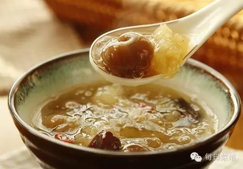 原料:银耳、桂圆干、枸杞、红枣、冰糖