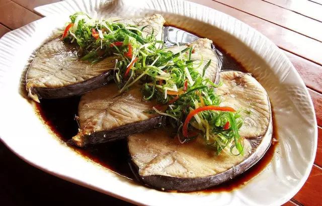 材料:巴浪鱼(2条,476克)、清鸡汤(2杯)、姜(5片)、葱(2支)、蒜(3瓣)、油(3汤匙)、普宁豆酱(2汤匙)、盐(1/2汤匙)、料酒(1汤匙)、白糖(1/3汤匙)