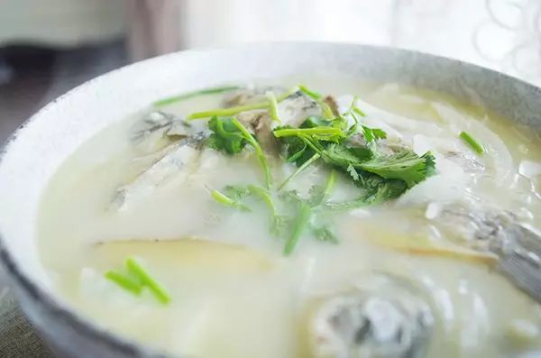 4.盖上锅盖,中小火慢炖20分钟这样,炖至汤色奶白,加盐即可。