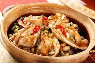4 .倒入2汤匙普宁豆酱和2杯清鸡汤,加盖小火焖煮5分钟,再开大火收至汤汁差不多干。
