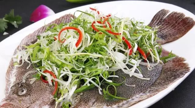 5.鱼蒸好以后,扔去姜葱,倒掉蒸鱼时渗出的水。将切好的葱丝和红椒丝均匀摆在鱼身上。
