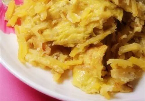 2. 锅内少许油,放入红薯慢慢煎至表面焦黄盛出备用