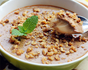 核桃中所含的微量元素锌和锰是脑垂体的重要成分,常食核桃有益于大 脑的营养补充,具有健脑益智的作用。可将核桃仁加冰糖捣成“核桃泥”,密藏在瓷缸内,每次取两匙,用开水冲和,冲时盅中有一层白色液体浮起,这就是“核桃奶”,腴美可口。