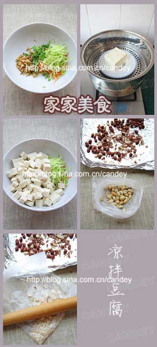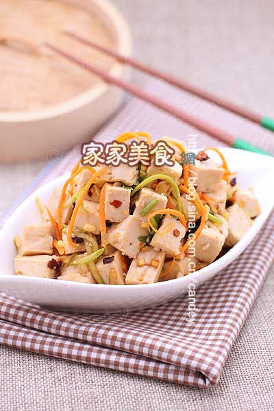 原料:豆腐 辅料:盐1/2茶匙,生抽1汤匙,老醋1茶匙,油泼辣子1汤匙,味精1/2茶匙,香油少许