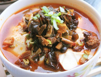 原料:香椿、嫩豆腐、木耳、牛腩、葱姜蒜、黄花菜、老干妈辣椒、盐1小勺、鸡精1小勺、料酒1小勺、蚝油1小勺、花椒水2勺。