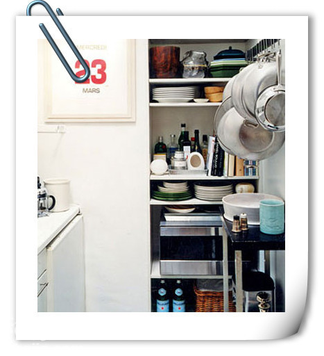 温馨提示:不要放过厨房里的任何窄或浅的空间。它们是收纳烤锅及大托盘的好地方。