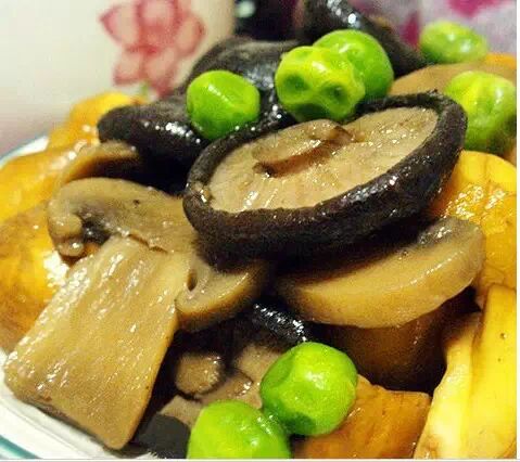 干香菇、蘑菇、青豆、板栗 素蚝油、芝麻油。