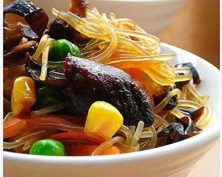 香菇(新鲜)、黑木耳(泡软)、玉米粒、青豆粒、胡萝卜(自己喜欢的较容易熟的蔬菜)、粉丝。