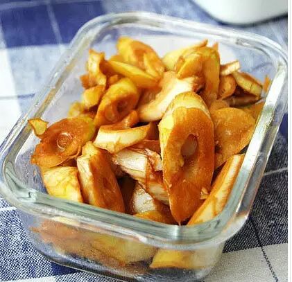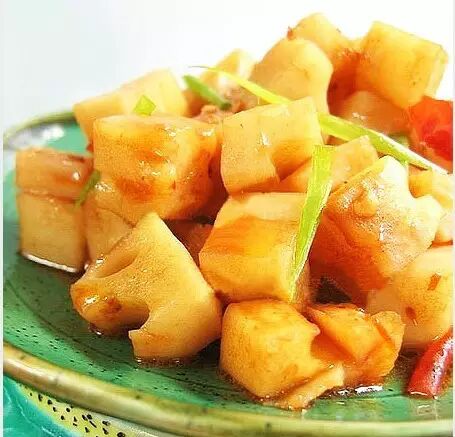 3)将藕丁倒入锅中煸炒2分钟,再依次倒入醋、糖、少许水和盐,继续加热5分钟,撒一点蘑菇精即可。酸酸的,甜甜的,辣辣的,脆脆的。