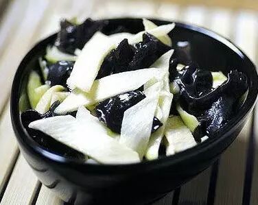 茭白一斤,干木耳15克(泡发)