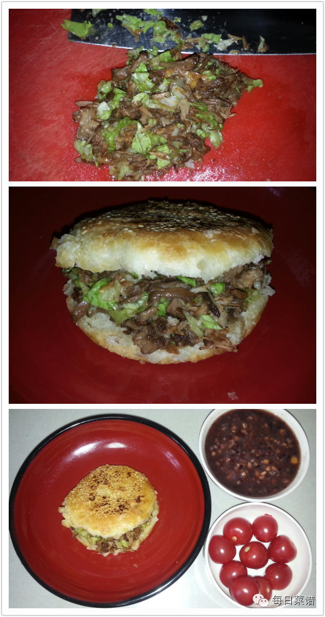 超市买的烧饼早晨起来平底锅热一下,头天吃剩的炖牛肉和生菜一起剁碎,把肉末加到烧饼里即可!一碗黑米粥外加一份圣女果!爱吃肉的晨晨一口都没剩下!早点摊上、饭店里肯定不会用放心肉的,所以宝贝爱吃肉的话还是自己在家做比较放心!
