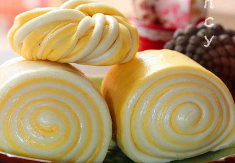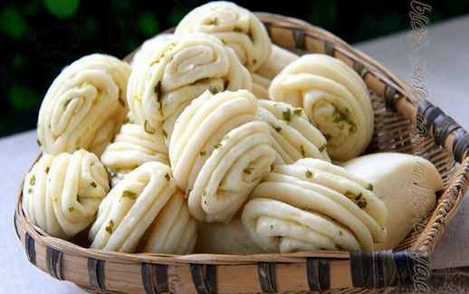 5、沿长的一边卷起,切成2-3厘米的段6、两个对着放在一起,用筷子压出蝴蝶形状7、放在刷过油的蒸笼上,饧30分钟,开大火,蒸15分钟左右,关火后等3-5分钟取出