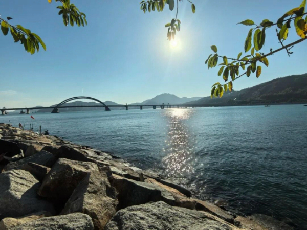 晨光初染跨湾桥。