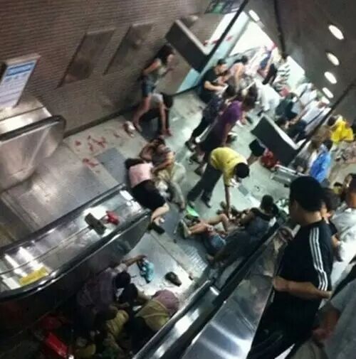 如果手扶梯上已经挤满了人,最好是等下一趟或者去走楼梯,因为如果有人在这时候摔倒或没扶好,都可能会引起连环踩踏事故!