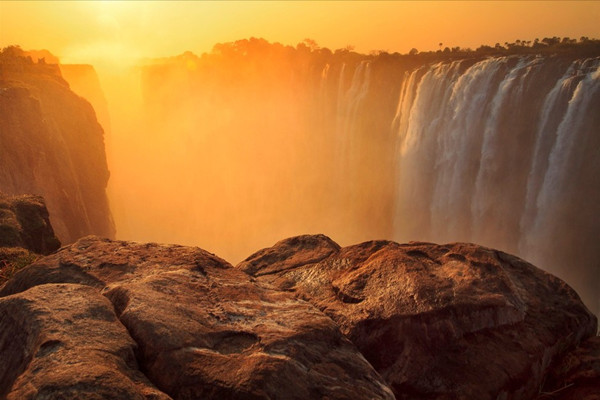 声音最大的瀑布:维多利亚瀑布(位于南部非洲赞比亚和津巴布韦接壤的地方,在赞比西河上游和中游交界处)
