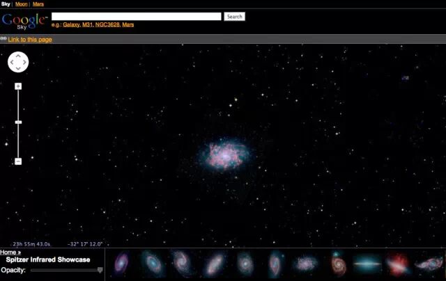Google天文台:进入Google.com/sky, 你可以通过NASA卫星、史龙数位巡天和哈勃望远镜一览星际美景。