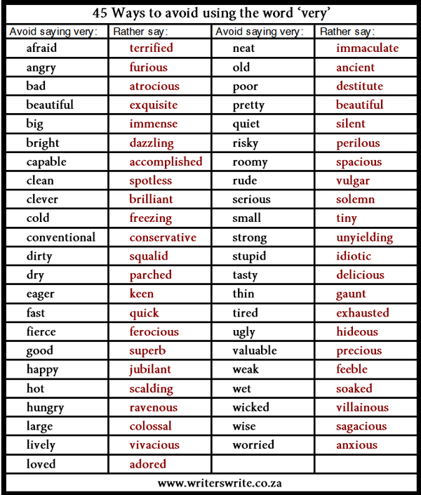 23. 别再用 very 了!这大概是英语中最被滥用的单词,因为 very 用于强调动词、形容词和副词都是很方便的。但是,用一个单词来清晰地表达你的想法,会让你显得更聪明哦!