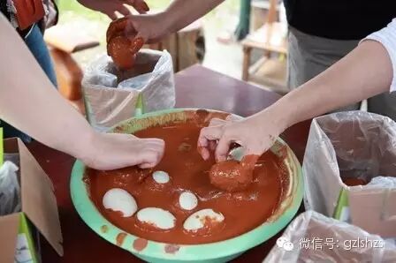 黄泥土或稻草灰加水、盐搅拌均匀,均匀地裹住每颗鸭蛋,然后放进小口大肚的坛内,密封30天,取出煮熟即可。