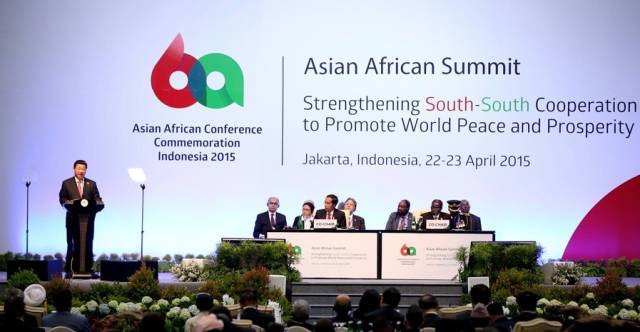 新形势下,中国将坚定不移推进亚非合作。中国已经同周边8个国家签署睦邻友好合作条约,愿同所有周边国家商签睦邻友好合作条约,将加强同非洲国家和平安全合作,帮助非方增强维和、反恐、打击海盗等方面能力。中国愿同亚非国家开展产能合作,支持非洲国家建设高速铁路、高速公路、区域航空网络,推动亚非工业化进程。中国将于年内对已建交的最不发达国家97%税目产品给予零关税待遇,并将继续向发展中国家提供不附加任何政治条件的援助。中国愿同有关各方一道推进“一带一路”建设,共同建设好亚洲基础设施投资银行,发挥好丝路基金作用。中国将同有关国家一道,完善中国-东盟、中阿合作论坛、上海合作组织等合作平台,办好年内在南非召开的中非合作论坛第六届部长级会议。中国将继续推动南南合作及南北合作,共同维护地区和世界和平稳定,促进共同发展繁荣。