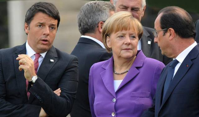 意大利总理伦齐、德国总理默克尔、法国总统奥朗德