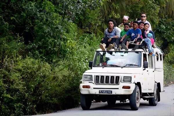 掉漆、布满划痕的奥拓牌出租车已成为这个国家最奢侈的公共交通,狭小破旧的车厢成了游客的专属“服务”;不足1.5米高的小型三轮公交遍布大街小巷,车门大开在车后方,承载量不足10人,司机时常载着挂在车门上的尼泊尔人,从堆满垃圾的公交车站驶出。车外常常是不足10厘米的车距,车内永远是的尼泊尔人的静默不语。