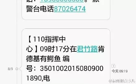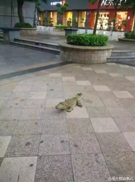 早上9点多有市民报警说马尾君竹路KFC有鳄鱼…图二据说是现场的图…