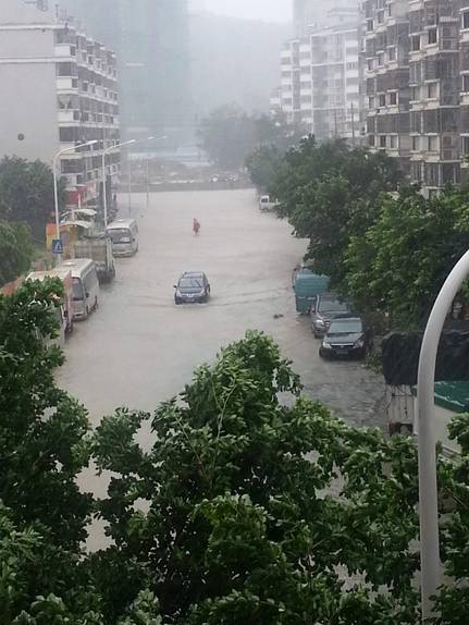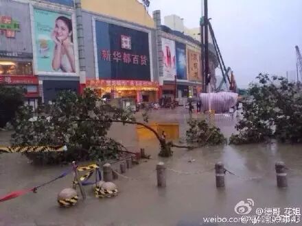 @林盛_FJ:“苏迪罗”把福州变成了湖州,路边站满了避风雨的人。福建省体育中心南门对面“国色天香”老板亲自出门请路边避难人员到其经营的茶馆,台球球馆、会所等场地休息避风雨!