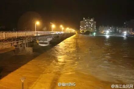 @连江金凤网:昨晚十一时,连江敖江解放大桥段两岸水位已经到警戒水位,机动大队严阵以待。