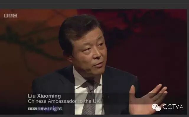 能言善辩 “舌战”BBC2015年10月16日,驻英国大使刘晓明在英国BBC强档品牌节目“新闻之夜”演播室接受该节目主持人埃文·戴维斯直播专访,介绍习近平主席对英国国事访问有关情况,并回答有关中国经济,网络安全,中英经贸、投资合作,人权等提问。BBC “新闻之夜”及主持人戴维斯