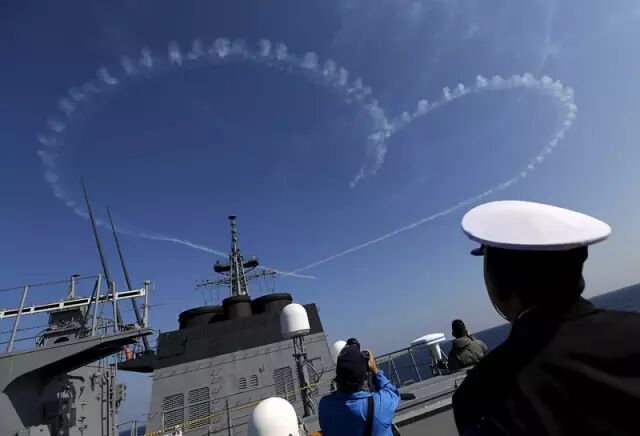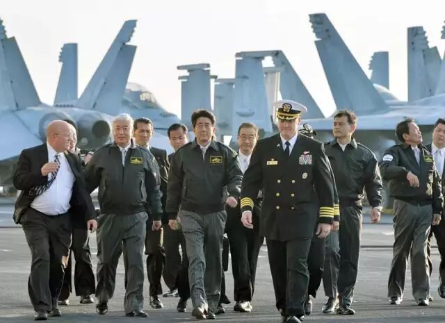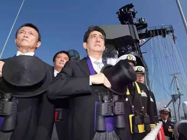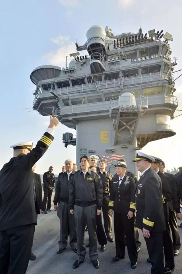 18号,日本自卫队在东京以南的相模湾举行了声势浩大的观舰式。海上自卫队精锐尽出,而美军核动力航母的出现更是被日本媒体形容为“惊喜”。安倍晋三也成为历史上第一位在任期间登上美军航母的日本首相。