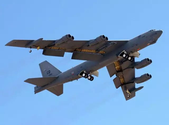 B-52是美国波音飞机公司研制的战略轰炸机,装有八台涡轮喷气发动机,具有卓越的远程续航能力和大载弹能力,目前仍是美国空军战略轰炸主力。随着美国亚太再平衡战略的实施,B-52被常态性部署于夏威夷与关岛安德森基地。