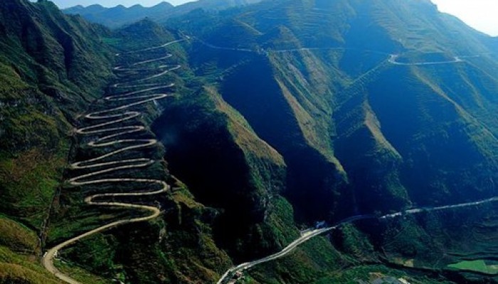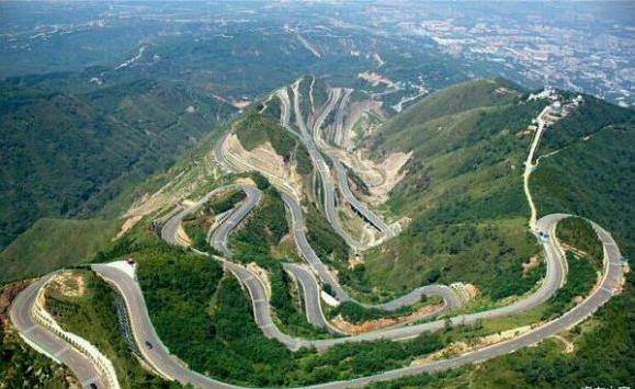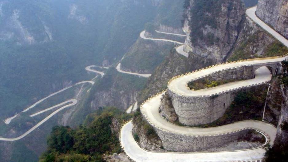 中国湖南省张家界天门山盘山公路有"通天大道"之称,盘山公路全长10.77公里,海拔从200米急剧提升到1300米,大道两侧绝壁千仞,空谷幽深,共计99个弯,180度急弯此消彼长,似玉带环绕,弯弯紧连,层层迭起,被誉为“天下第一公路奇观”。