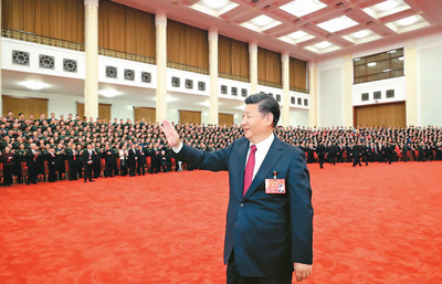 10月25日下午,中共中央总书记、国家主席、中央军委主席习近平等领导同志在北京人民大会堂亲切会见出席党的十九大代表、特邀代表和列席人员。新华社记者 鞠 鹏摄