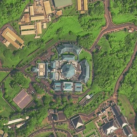影像解析:文莱位于亚洲东南部,总面积为5765平方公里。拍摄地好似伏于绿色绸缎上的蓝色宝石吊坠,精美而不隆重。