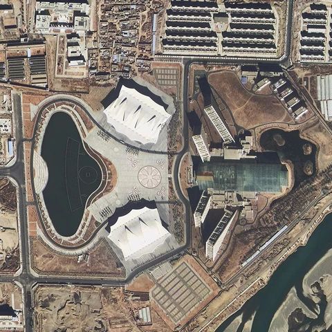 影像解析:西藏自治区会展中心位于拉萨市东郊江苏大道的拉萨河畔,这景影像显示出了清晰的地物和清楚的纹理,有点像起瓶器。
