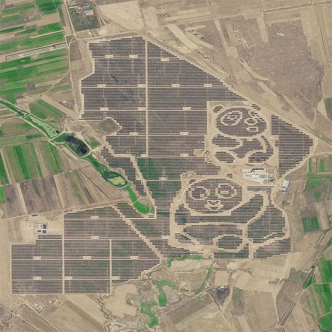 影像解析:萌到国际的熊猫太阳能发电站位于大同县杜庄乡土井村西,于2016年11月20日正式启动建设。