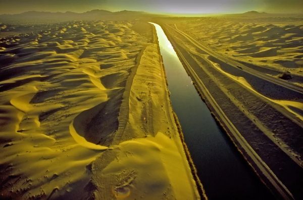 “红旗河”取水水位较低,因此水量充足。预计年总调水量可达600亿立方米,仅占主要河流取水点总量的21%,将在我国西北干旱区形成约20万平方公里的绿洲。由于全线保持高水位运行,可以自流覆盖绝大部分干旱区域。这些地区地势平缓、光照充足,可根据需要设置大量支线,工程实施后,将形成约1万公里长、20公里宽的绿洲带。随着生态环境的逐步改善并产生累积效应,将带来巨大的生态效益和经济效益。