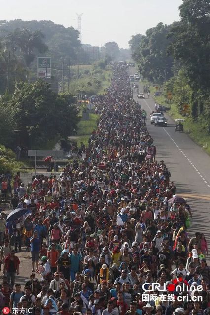 可以怎样?可以进入美国。美媒报道说,这是一支穷人大军,多数人来自危地马拉、洪都拉斯和萨尔瓦多等国。墨西哥关闭了与危地马拉相接的边界大桥,他们中许多人撑筏渡河,再攀上陡峭的河堤进入墨西哥一侧,然后或靠双腿,或乘大篷车,向北面的美墨边境跋涉。
