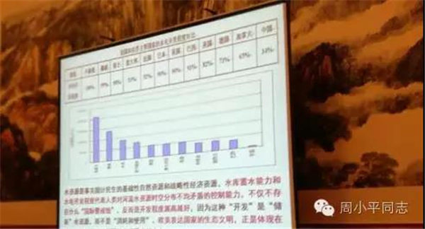 首先,我们来看一组关于全世界各国通过修建水库水坝对河流的利用率数据:卢森堡100%,挪威99%,瑞士98%,意大利93%,法国92%,日本90%,英国90%,美国82%,德国73%,中国34%。