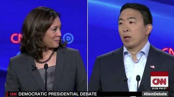 讨论健保、移民、经济等问题时,杨安泽都给出了清晰的答案,而且不断提及他的标志性政策——向每个成年人每月发放1000元的全民基本收入计划,指出此举能解决一系列问题,如女性和少数族裔同工同酬问题、刑事司法不公平问题,甚至气候变化问题。